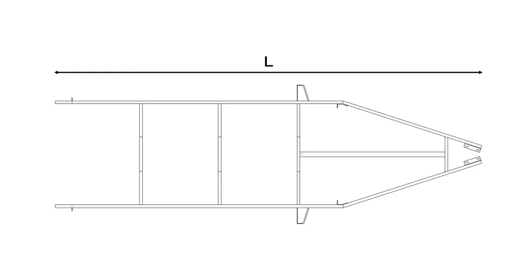 Om de juiste lengte voor uw boottrailer te selecteren is het voor ons belangrijk om te weten hoe uw boot eruitziet en welk type opbouw gewenst is. De totale benodigde lengte (L) van uw boottrailer is over het algemeen de lengte van uw boot (gemeten vanaf het trek-oog tot aan de spiegel) + 1,0 meter (ruimte voor de boegsteun). Daarnaast is het goed om te weten dat: